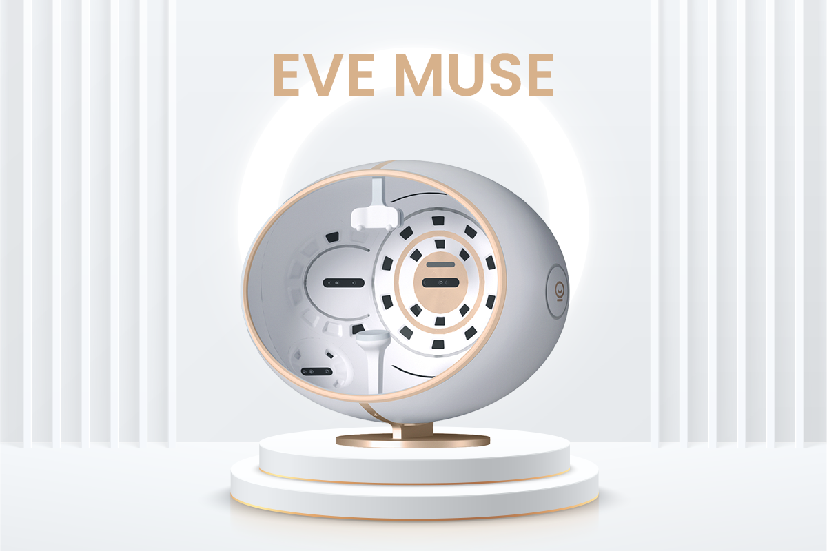 EVE Muse 3D AI 시스템으로 피부의 현재를 객관적으로 기록합니다. 색소·모공·주름·탄력·수분·홍조 — 여섯 층의 상태를 수치화하고, 다음 방문 때 미세한 변화까지 비교할 수 있도록 저장합니다. 상담이 시작되기 전, 피부가 먼저 말합니다.